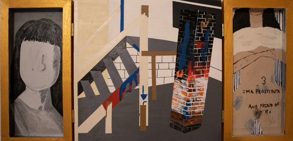 Ensuite nous avons fait les deux projets liés aux séries. J’ai demandé la permission de continuer ma série liée aux femmes mortes dans l’isolement, mais près des autres en étapes qui correspondaient aux deux projets. J’ai produit les centres de trois triptyques dans le cadre du premier projet.
