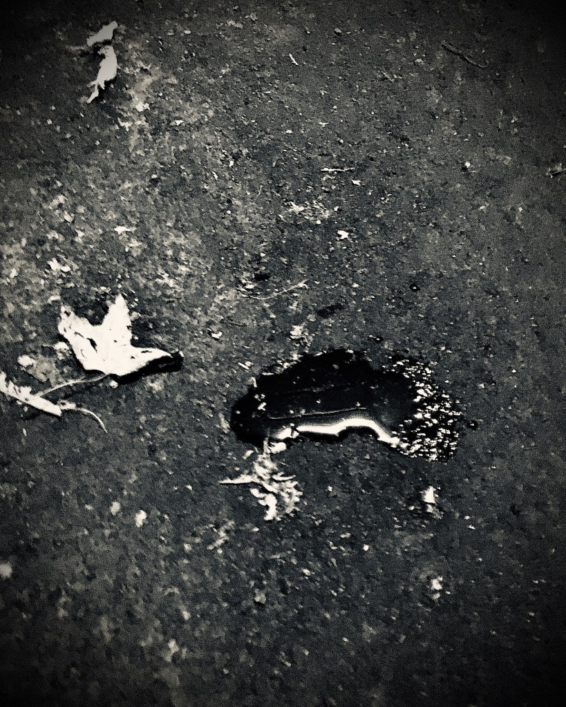 (Le chiot est enfin arrivé. Il me fait un bien fou. C’est une magnifique photo de son urine, puisque personne ne veut voir ça non plus.)