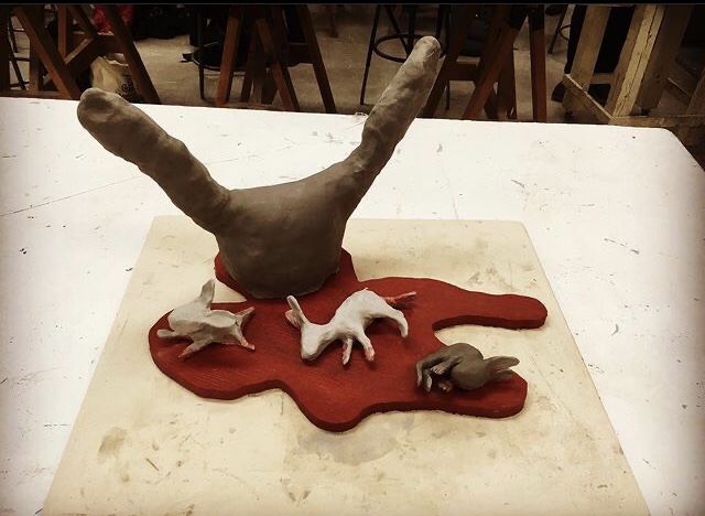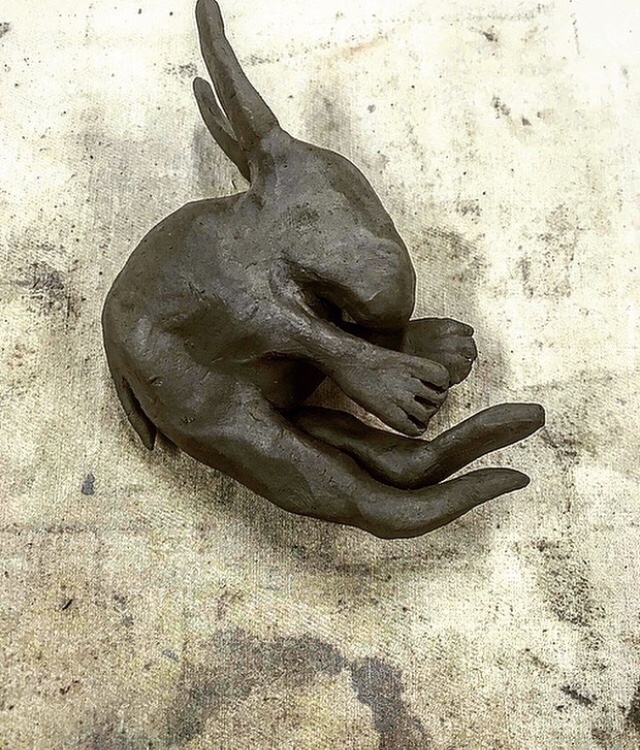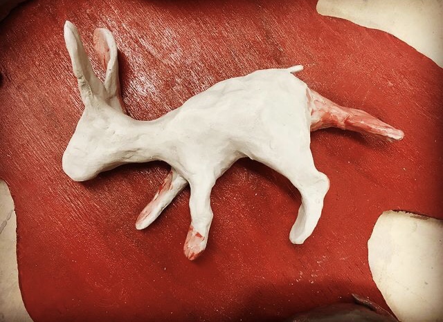 Mon second trauma lié au lièvre a un lien avec ma fertilité. Il y a quelques années, j’ai passé des tests pour savoir quel était le problème avec mes règles. Je me vide littéralement de mon sang à chaque fois. Je vous épargne les détails, mais le terme « vider » n’a rien d’une exagération dans mon cas. Si bien que je prends des médicaments pour ne plus avoir de règles depuis quelques années maintenant parce que cela baissait mon taux de fer de façon alarmante. Lors de ces examens, on m’a découvert un minuscule fibrome qui n’a rien de dangereux, mais en même temps, on a découvert quelque chose au sujet de mon utérus qui est anormal. J’ai un utérus bicorne. J’ai déjà écrit là-dessus quand j’ai fait la sculpture que l’on peut voir dans les images. J’ai appris alors que mon utérus a la forme d’une tête de lièvre, ce qui rend très difficile pour moi le fait d’avoir des enfants. Il existe des opérations, oui, mais comme je n’ai jamais eu envie d’avoir des enfants, je vais m’éviter de me faire charcuter pour rien, merci. Je commence à être trop vieille aussi. Ce serait encore possible, en théorie, mais avoir un enfant passé 40 ans ne fait absolument pas partie de mes projets. Je n’ai pas de petite horloge qui s’agite à l’intérieur de moi non plus et j’aimerais qu’on me fiche la paix avec ça. Ce ne sont pas toutes les femmes qui veulent des enfants. Il faudrait que cela devienne clair et qu’on nous laisse tranquille à un moment donné.