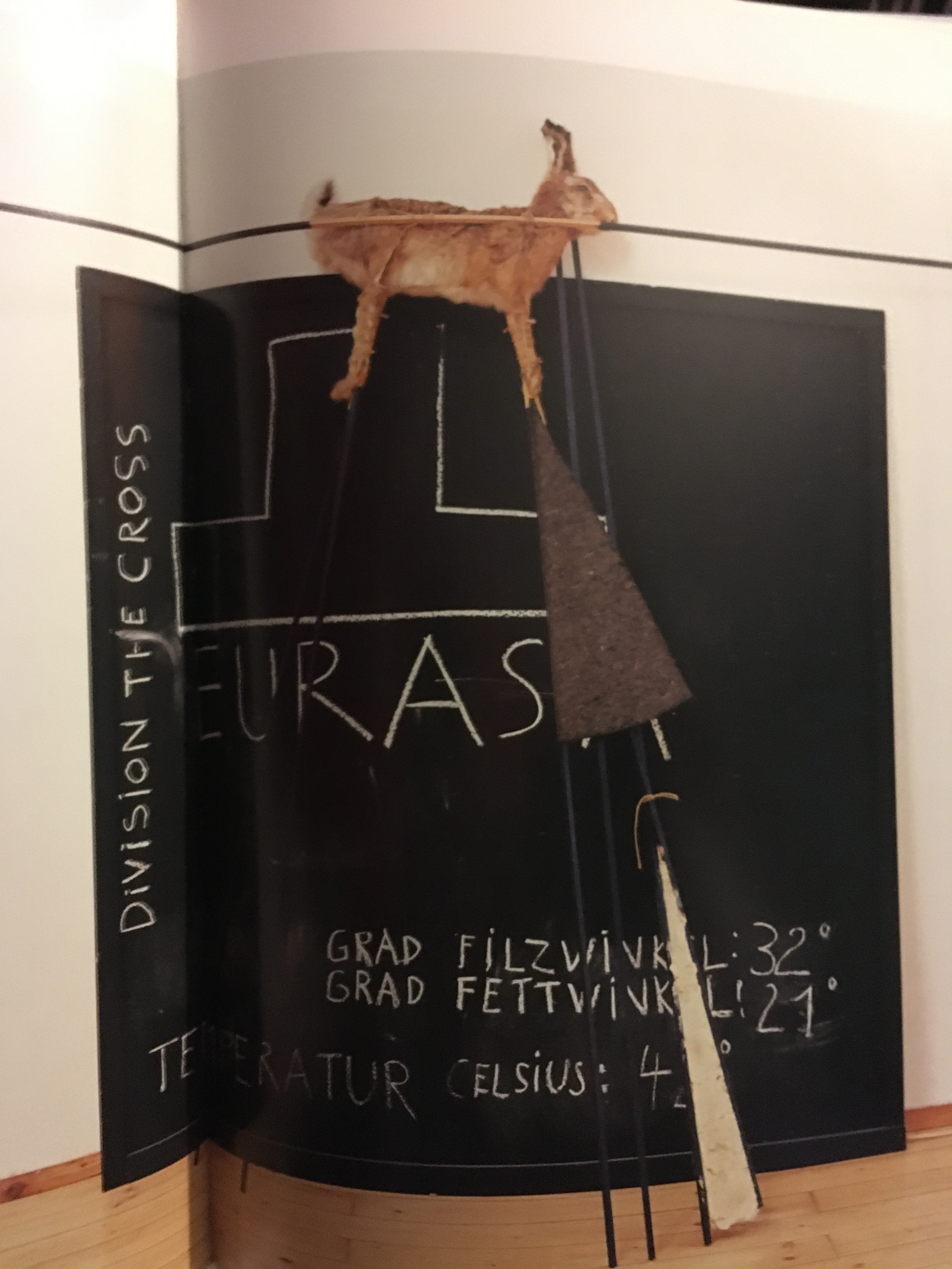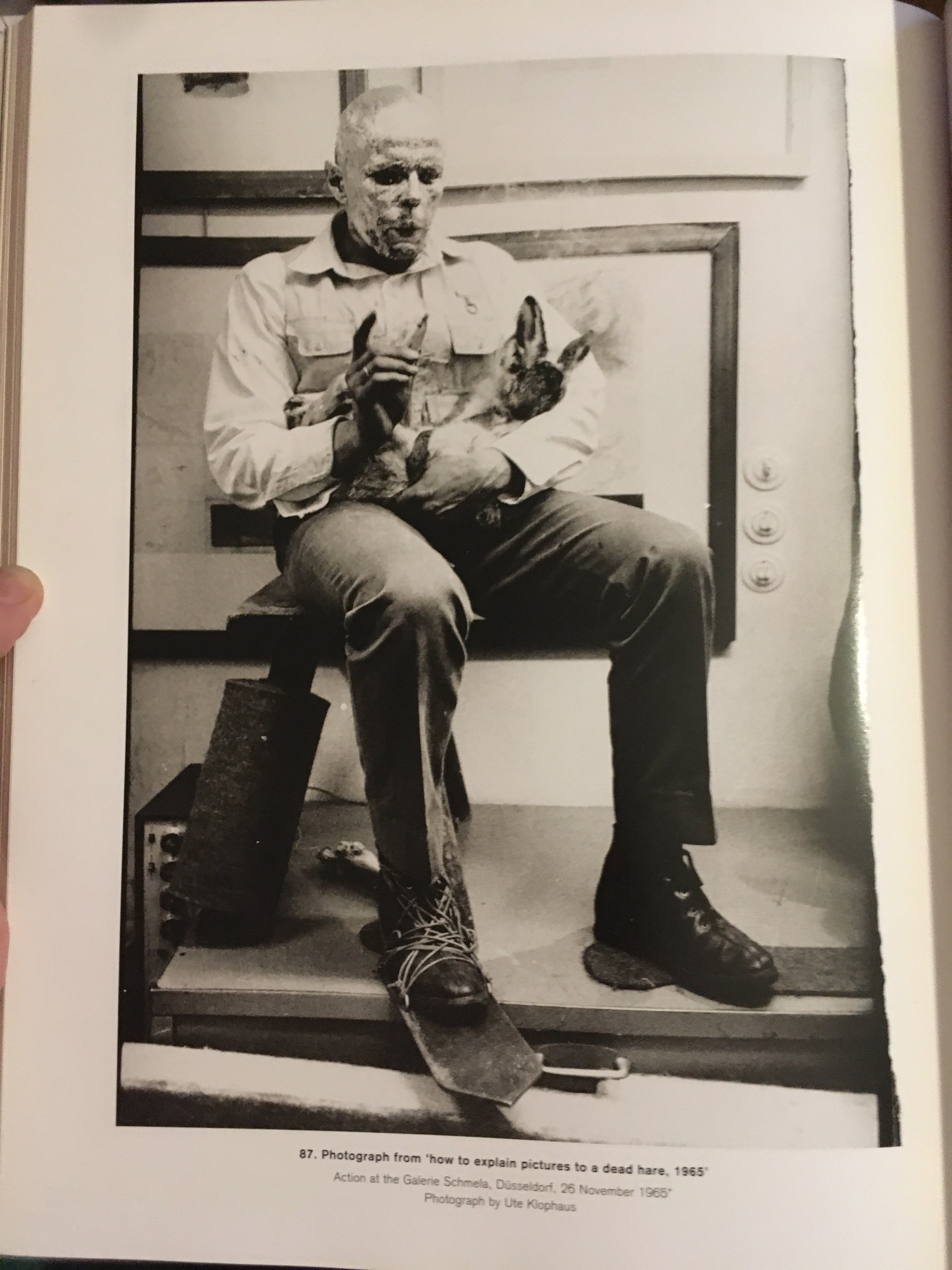 Le troisième élément qui m’a fait me décider pour le lièvre est qu’il fait partie de nombreuses œuvres d’un des artistes que je préfère et qui reste pas mal stable dans mes goût depuis mon adolescence, soit Joseph Beuys. Je n’écrirai pas de texte sur l’art de Beuys aujourd’hui, mais peut-être plus tard. Vous pouvez voir certaines de ses œuvres dont l’incroyable « Comment expliquer les tableaux à un lièvre mort » dans ces photos.