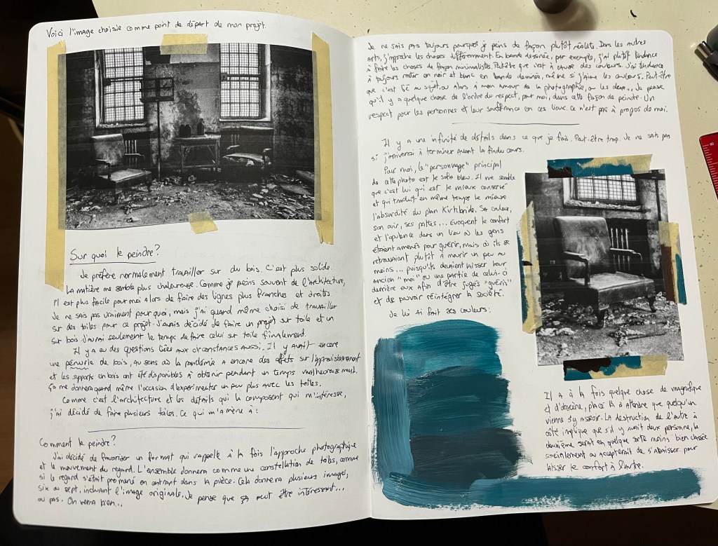 Quand on regarde mes toiles, la plupart du temps on me dit que ce qui frappe le plus c’est une forme de tendresse pour la souffrance de l’autre. Une compréhension intérieure profonde de la souffrance que les autres ont traversée aussi, parce que moi aussi, j’en ai traversé des souffrances atroces… Ça me plaît bien, ça, comme commentaire parce qu’il y a réellement en moi cette volonté de voir ce que les personnes qui ont vécu dans les lieux dépeints, qu’elles soient représentées ou pas, ont traversé. Un désir de les voir vraiment. De ne pas chercher à cacher leur réalité. De ne pas fuir ni être dégoûtée. Ça me donne l’impression de leur redonner, même si c’est tard et bien infime comme contribution, de leur importance et de leur humanité. Je n’ai que du mépris pour les gens qui détournent le regard de la souffrance de l’autre ou qui veulent la cacher.