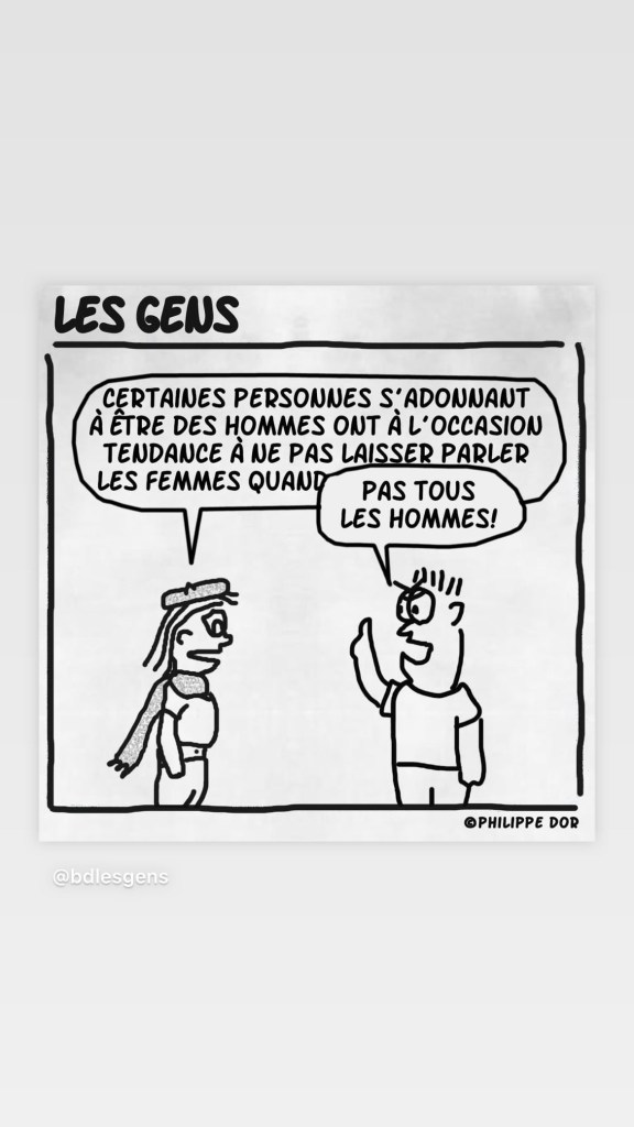Parce que c’est de ça qu’on parle quand on parle de misogynie intériorisée et de violence envers les femmes. C’est aussi de ça qu’on parle quand on aborde les sentiments d’infériorité intériorisés par les femmes. C’est un système de croyances fausses présentées comme vraies et acceptées sans questionnements (ou avec, en tout cas, pas assez de questionnements) par énormément d’hommes (et de femmes aussi, vu le nombre de femmes s’y soumettant et vu le nombre de femme ayant « rationnellement » voté pour Trump il y a quelques années). Ce n’est donc pas une attaque personnelle. C’est une attaque contre une structure de pensée maintenant démontrée entièrement fausse, mais qui persiste à conditionner tellement de comportements qu’elle maintient en place nombre de comportements d’oppression qui nous gâchent la vie à tous et nous empêchent d’avoir des relations plus saines et plus égalitaires.