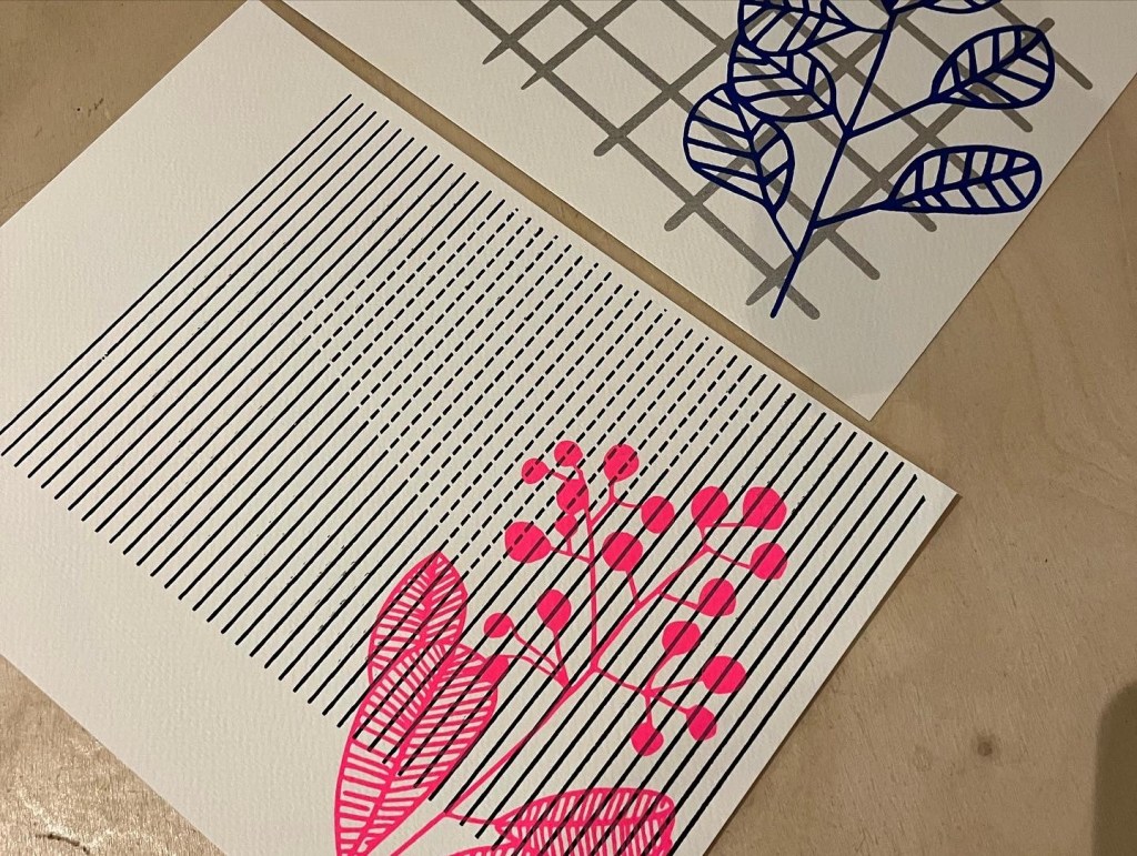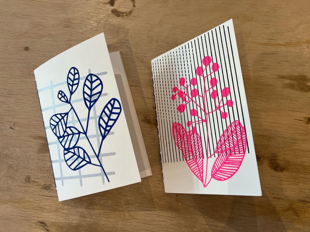 Hier je suis allée à un atelier de sérigraphie, question d’avoir encore plus de connaissances sur ce médium. Nous avons fabriqué des cahiers dont la couverture est sérigraphiée. J’ai vraiment aimé l’atelier et les deux personnes qui l’ont donné dont j’explorerai le travail durant les prochaines semaines. L’atelier m’a posé quelques défis.