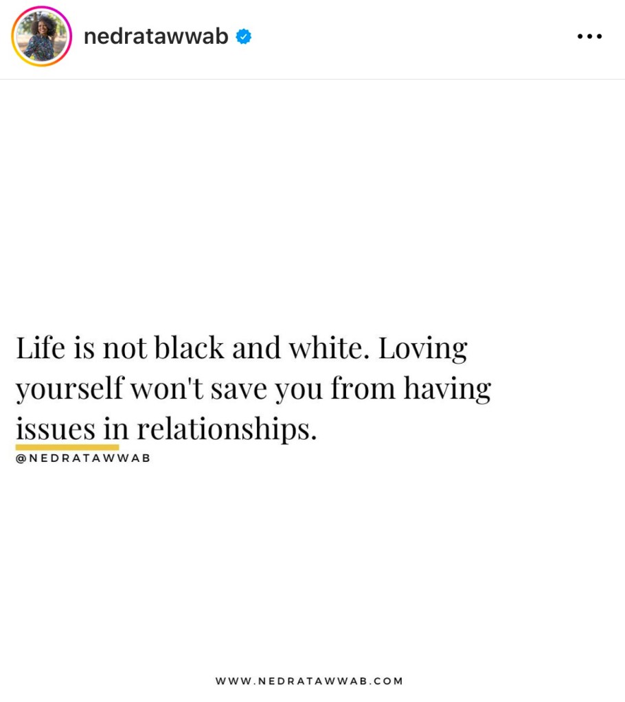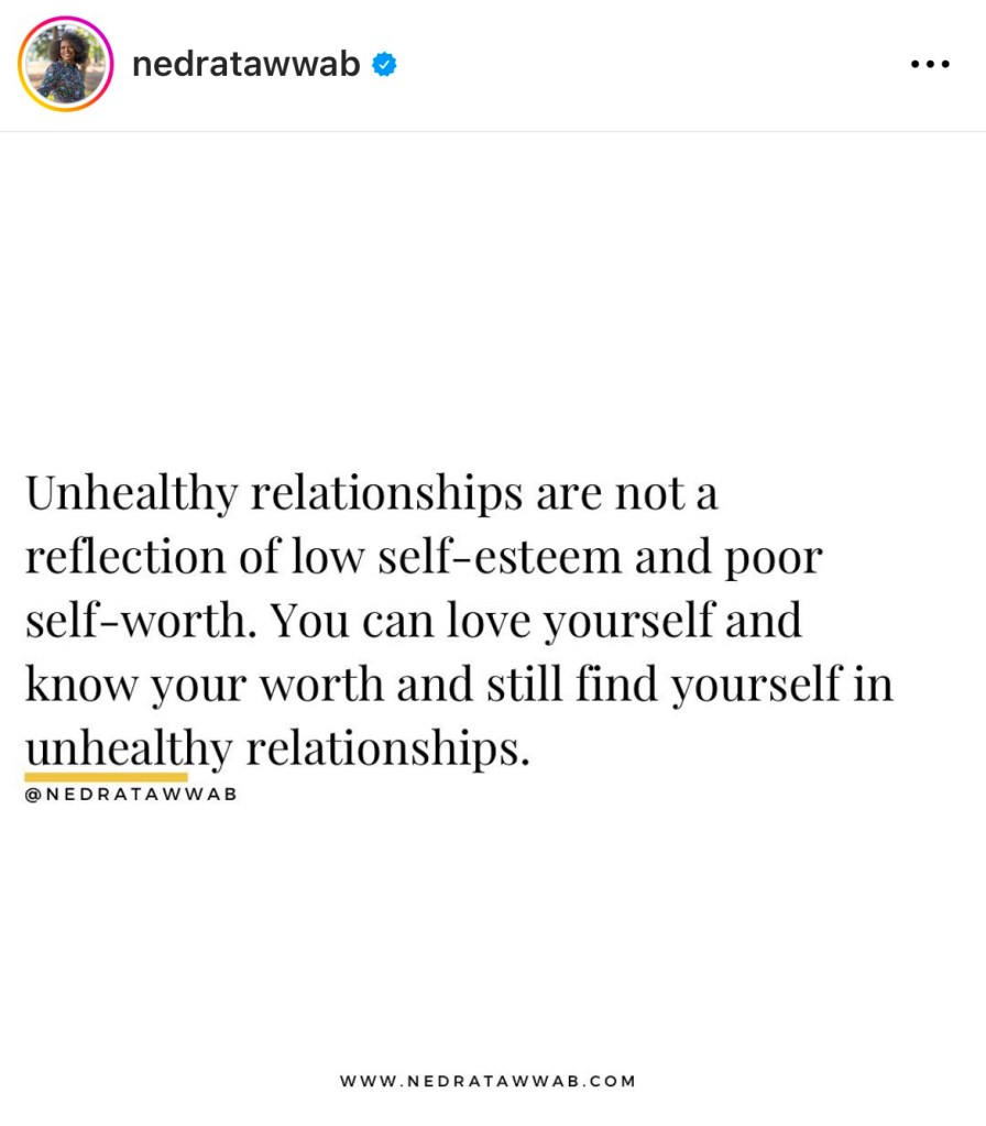 Aujourd’hui, je vais bien, malgré les effets secondaires des violences qui persisteront toujours dans ma vie. C’est facile de me dire de ne pas y penser, de penser seulement aux belles chose et… mais vivre le type de violences que j’ai vécues, ça laisse des traces dans le cerveau, qu’on le veuille ou pas. Dans le système nerveux aussi et le fait de les nier nuit plus qu’il aide. Pendant des années, on a continué à me mettre le fait que je vivais des relations violentes sur le dos, me disant que c’était parce que je ne m’aimais pas, parce que je choisissais de mauvais hommes et… Le fait d’avoir une mauvaise estime de soi ne signifie absolument jamais que c’est votre faute si on vous maltraite. La violence appartient toujours à la personne qui la commet. Pas à celle qui la reçoit. Voir les images de Nedra :