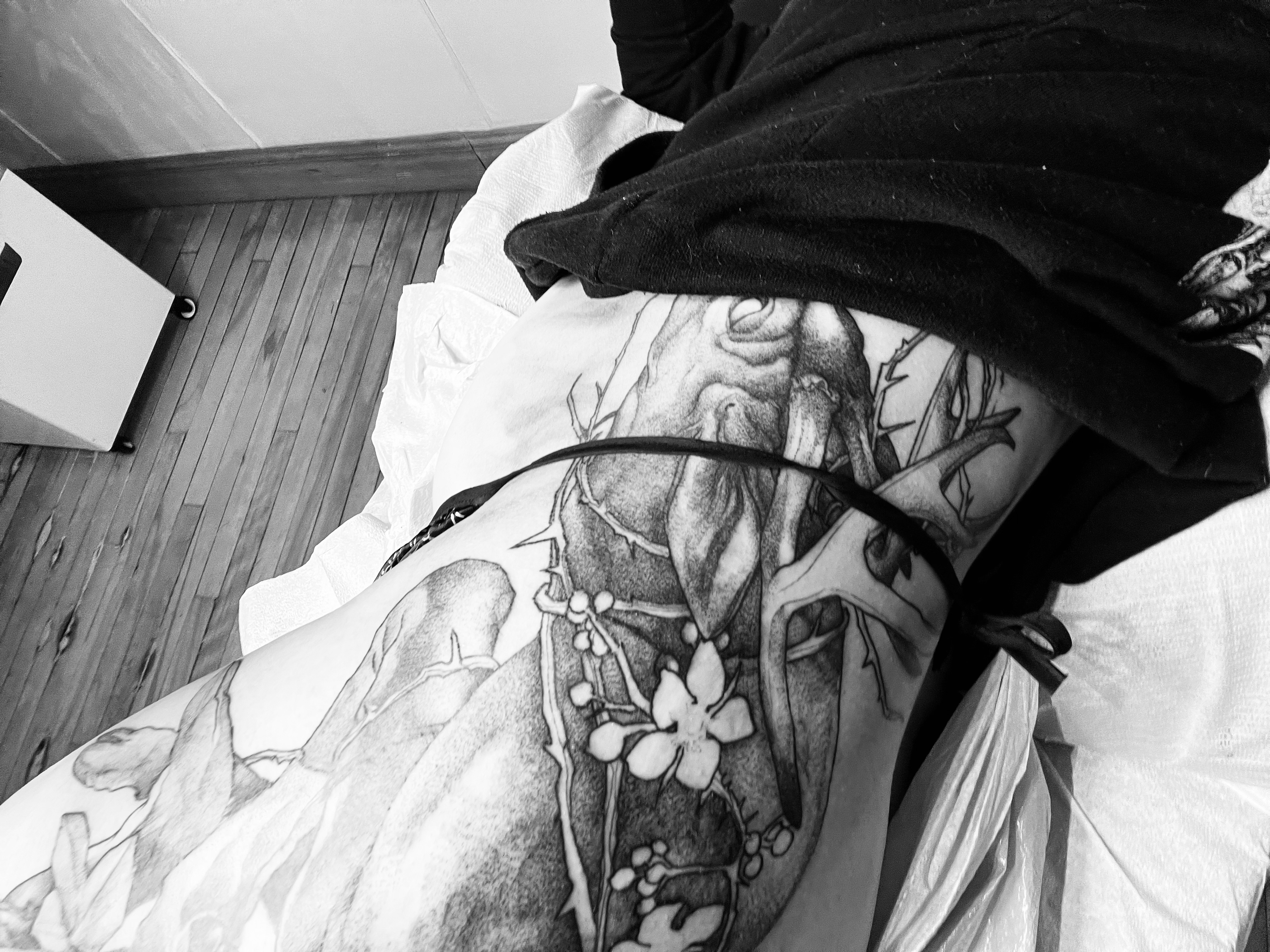 Pour le moment, je me sens comme le cerf pris dans les ronces que je suis en train de me faire tatouer sur le corps. Ça fait mal à plusieurs niveaux. Je sais que je suis forte et que je me dégagerai de la douleur, mais ça prendra du temps.