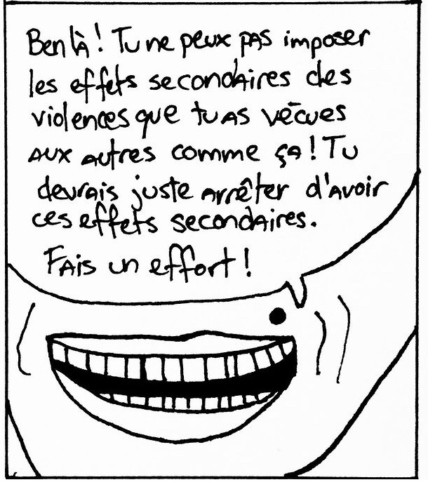 Je trouve difficile d’imaginer comment peuvent être mes relations avec les autres maintenant. J’en ai encore des bonnes, mais quand même, les dernières années ont été incroyablement perturbantes et je me demande sincèrement pourquoi les autres sont si pleins de haine et incapables de s’intéresser à la réalité de l’autre en face d’eux, à sa vie, ses besoins et… Je ne sais pas trop quoi faire. Je ne sais plus comment faire.