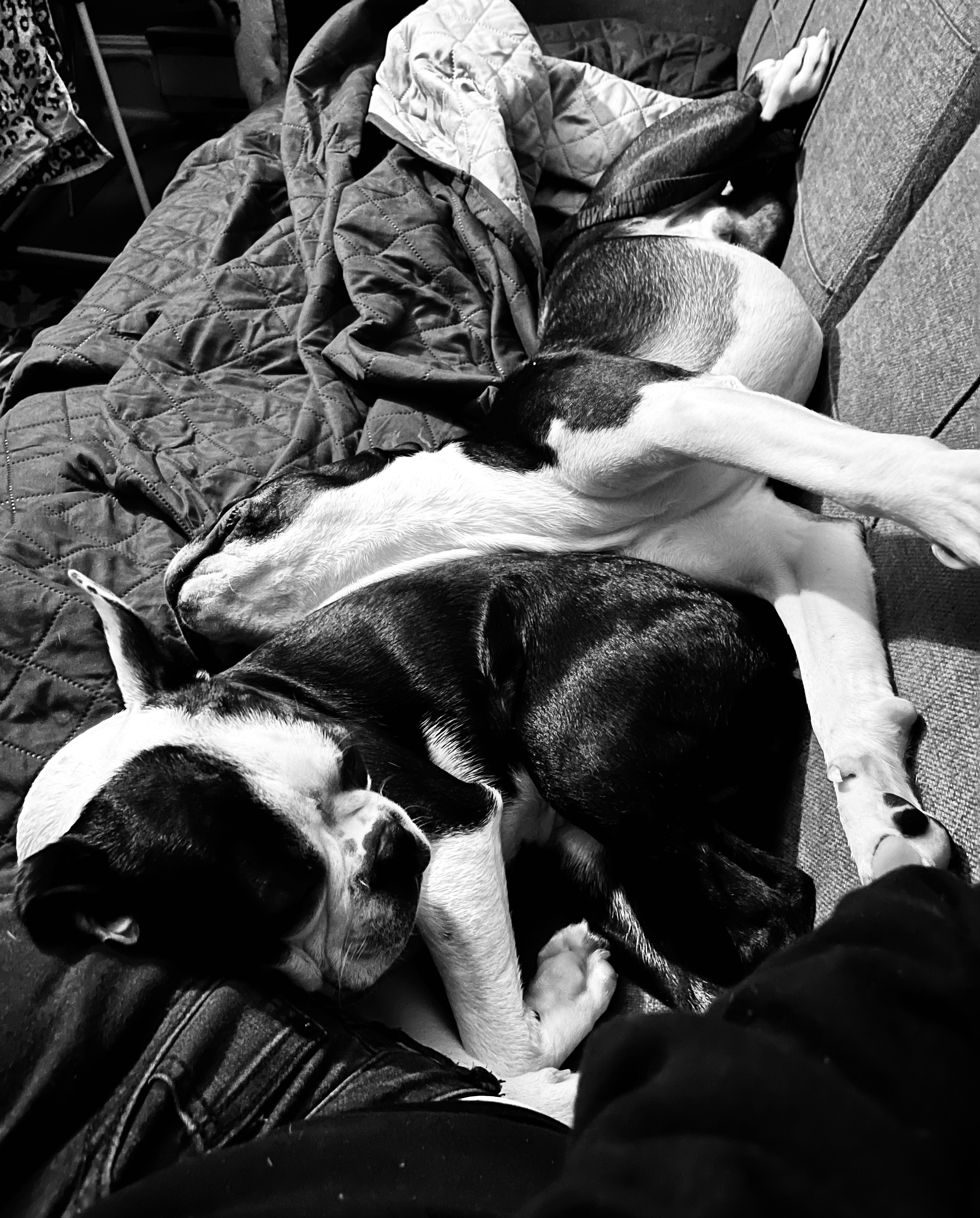 Je retrouve peu à peu de l’énergie. Je bouge et range plus. Je termine mes tâches de plus en plus vite et efficacement. Je vois l’avenir se réouvrir. Je fais des listes… de projets, de rêves, de choses à faire ou terminer, de choses à essayer… un budget, des étapes à franchir, des béquilles dont je veux me débarrasser. Je fais tout ça au Soleil ou dans mon atelier minuscule, entourée et maintenue en vie par les bruits et l’amour de mes chiens. Il fait bon être moi au fond. Je préférerai toujours avoir eu la vie que j’ai eue et fait les choix que j’ai faits plutôt que d’être comme ces personnes qui m’ont blessée. Je ne pense pas risquer de sortir avec un homme avant très longtemps. Peut-être jamais en fait. Oui, certaines choses me manquent, mais nous vivons dans un monde, une société où les hommes travaillent peu sur eux et j’imagine qu’ils en souffrent et ont souffert avant, mais ce n’est pas une excuse pour me faire souffrir ni essayer de me détruire. Si un jour je fréquente un homme à nouveau, j’en choisirai un qui travaille sur lui-même, qui est lucide et, surtout, qui comprend que les violences des hommes m’ont volé une partie de ma vie même si je me suis incroyablement débattue pour en sortir toujours plus forte et humaine. Il y a des limites et ces limites je les ai atteintes. Je veux quelqu’un capable de voir ça, d’en saisir l’horreur et de respecter ma vie et mes choix. Je serai heureuse sans lui s’il n’existe pas. Je ne me laisserai plus avaler par les hommes enfants ni les hommes trous noirs. C’est un engagement que je prends face à moi-même.
