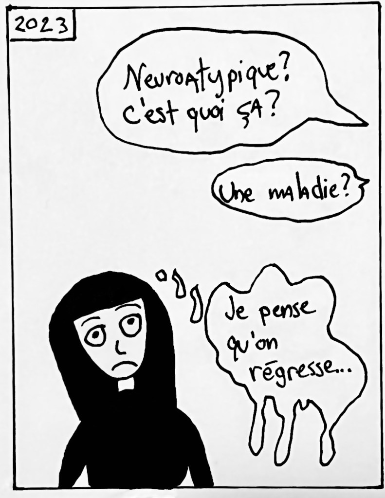 J’ai fait un genre de coming out de neuroatypique aujourd’hui. C’était en partie lié à cet événement… aussi au fait que ça fait quelques fois récemment qu’on essaie de me faire sentir comme une idiote… c’est quand même drôle dans les circonstances… tout en étant agressant, oui. Ça a l’air compliqué de poser des questions en tout cas… ou de se renseigner… ou de se mettre à la place de l’autre… ou de s’excuser… Bien des choses bien simples ont l’air compliquées pour beaucoup de personnes finalement.