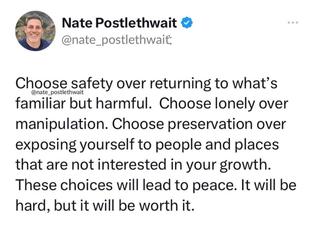 Ça me fait de la peine de constater à quel point je me suis fait du mal et à quel point je me suis manqué de respect moi aussi. Pas seulement ces hommes. Le fait que je dise ça n’excuse en rien leurs comportements. Ils sont entièrement responsables de leurs choix. Quand je vois une personne qui ne s’aime pas ou ne se respecte pas, je n’ai absolument jamais le réflexe d’essayer d’en profiter. Je choisis plutôt de bien traiter la personne. Nous avons tous le choix. Ils ont choisi de me faire du mal. Je n’en suis pas responsable. J’ai fait ce que j’avais à faire et je continue. J’ai appris à m’aimer et à mieux me traiter. J’ai appris à reconnaître les malsains aussi de plus en plus rapidement. Une des choses que je dois encore apprendre c’est à m’écouter absolument à chaque fois que j’ai le moindre malaise face à quelqu’un. A la fin, c’est toujours là qu’est la vérité. Dans ce que j’ai senti.
