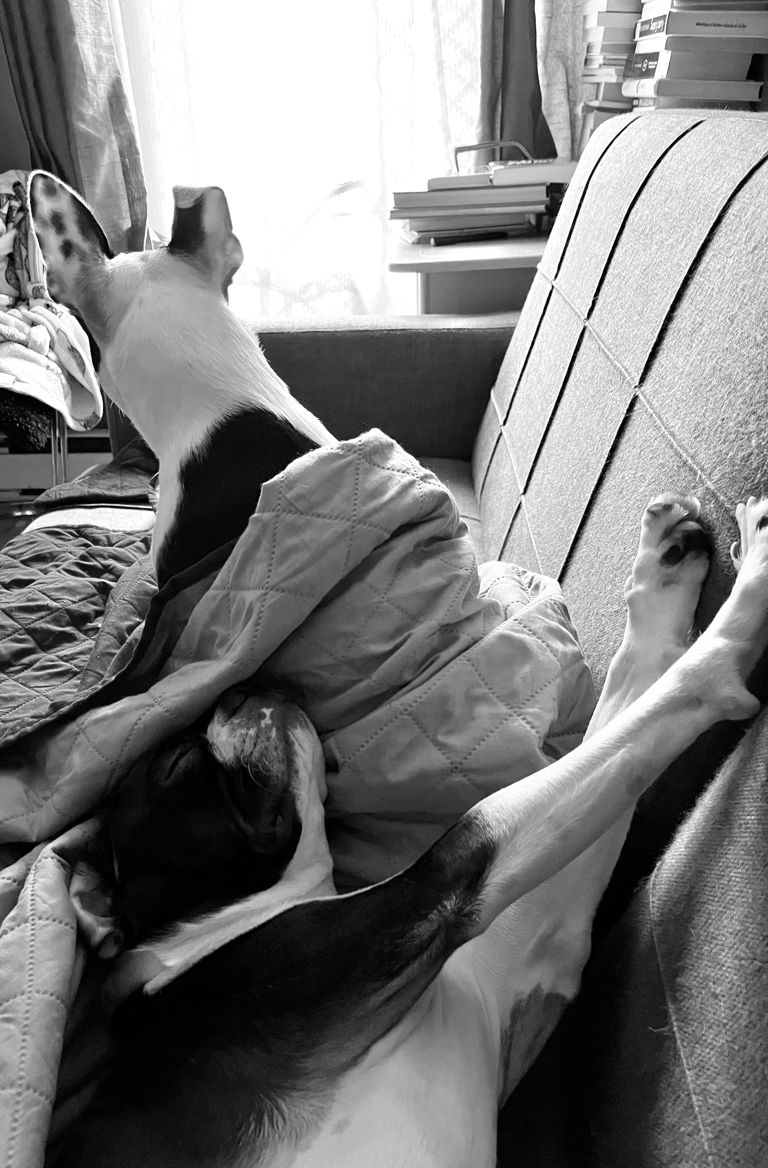 Je suis dans la sécurité et les comportements sains et apaisants ces jours-ci. J’ai mes deux minis loups pour m’aider à rester calme et à récupérer. Il me faut développer d’autres raisons de me lever le matin en attendant que je sois plus prête à développer de nouveaux liens avec des humains. J’en ai quelques-uns, mais ce serait une bonne idée d’élargir mon cercle d’amis. Un jour à la fois.