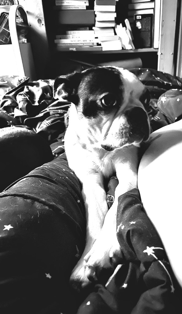 Il aura suffit que je me dessine avec un râteau pour en faire apparaître un dans le parc. Si seulement c’était si facile… Je me dessinerais un système nerveux réparé, une meilleure santé, un St-Hubert bavant aux oreilles infiniment pendantes, un endroit à moi où vivre en sécurité et en paix, des sous pour payer mes dettes même si ça avance bien, un emploi où il n’y a pas de manque de respect, un été moins chaud, un hiver un peu plus doux, plus de temps et d’énergie pour réaliser tous mes projets… et peut-être un homme non misogyne et non violent qui m’écoute, pose des questions, comprends, réfléchis et est honnête et courageux… oh et qui sait ce qu’il veut aussi!