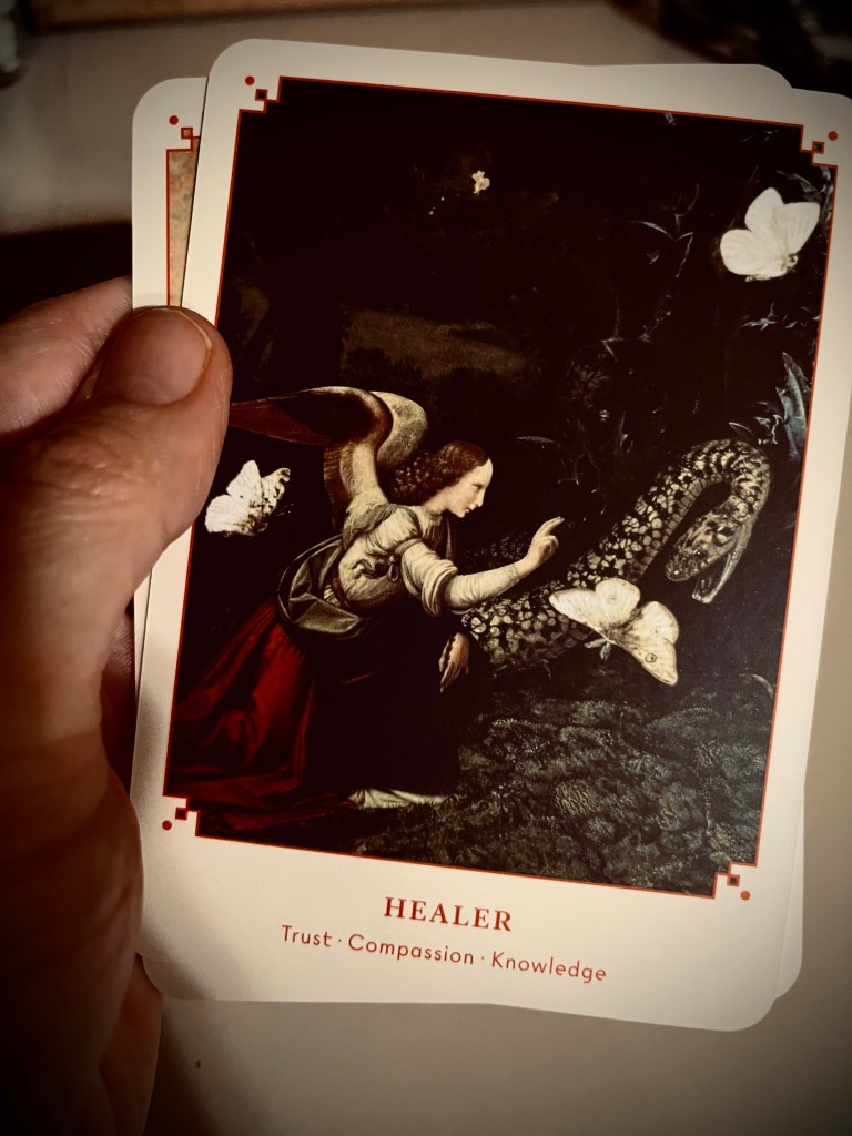 Ma belle-sœur dit que souvent les cartes nous donnent des réponses qu’on avait déjà, mais qu’on était incapable de voir. Je pense que c’est pas mal ça. Ça nous aide à créer des liens entre des choses qui nous habitent déjà plus ou moins consciemment. Le jeu de cartes est magnifiques en tout cas et ça va bien avec les champignons et la mycorhize toutes ces petites connexions!