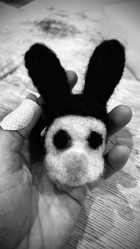 J’ai acheté des maquettes . Elles deviendront des lampes dans ma bibliothèque… mais ça veut dire qu’il faut faire sortir des livres… Tous les écrivains misogynes doivent prendre la porte durant l’été. Sauf Céline… Je vais toujours garder Céline malgré tout. J’ai commandé une machine à coudre aussi. Je suis pas mal prête pour toutes mes activités d’été ou presque. J’ai infiniment hâte. Je suis allée à un atelier de feutrage hier. J’ai fait cet horrible lapin déguisé en lièvre. J’ai trouvé ça fascinant d’apprendre. J’aime bien connaître les techniques ancestrales. J’ai besoin de plus d’espace.