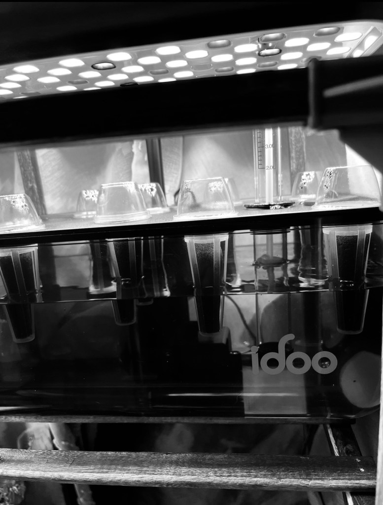 J’ai pris congé aujourd’hui. Je suis allée chez le dentiste qui m’la répare une dent cassée en mangeant des pistaches. Il m’a promis de me faire des dents de lapin si un jour je lui demandais, mais que ce serait un peu plus cher pour les matériaux. Nous avons bien ri. J’ai aussi installé mon jardin hydroponique:
