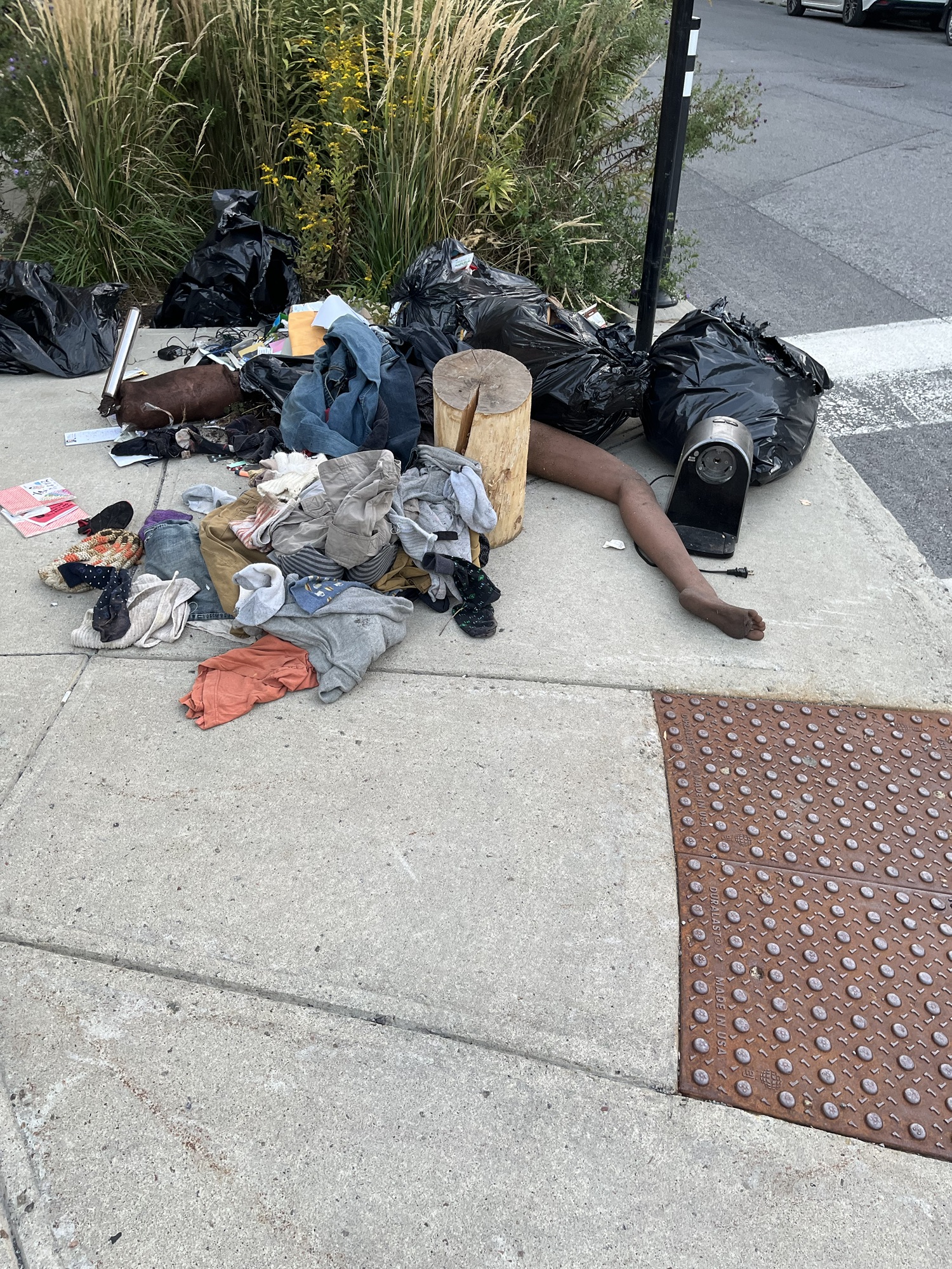 En fait il y a trois drags queen qui habitent l’appart au coin de la rue. J’imagine que ça leur appartient. J’ai quand même eu un moment d’inconfort en voyant la jambe et j’ai dû aller vérifier ce qu’il en était pour avoir l’esprit tranquille.