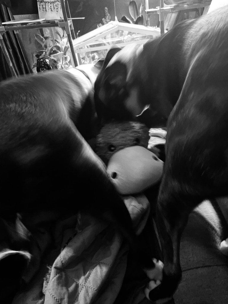 Ici c’est la fête de vacances déjà. Les chiens tuent des rennes. Je vous reviens bientôt.