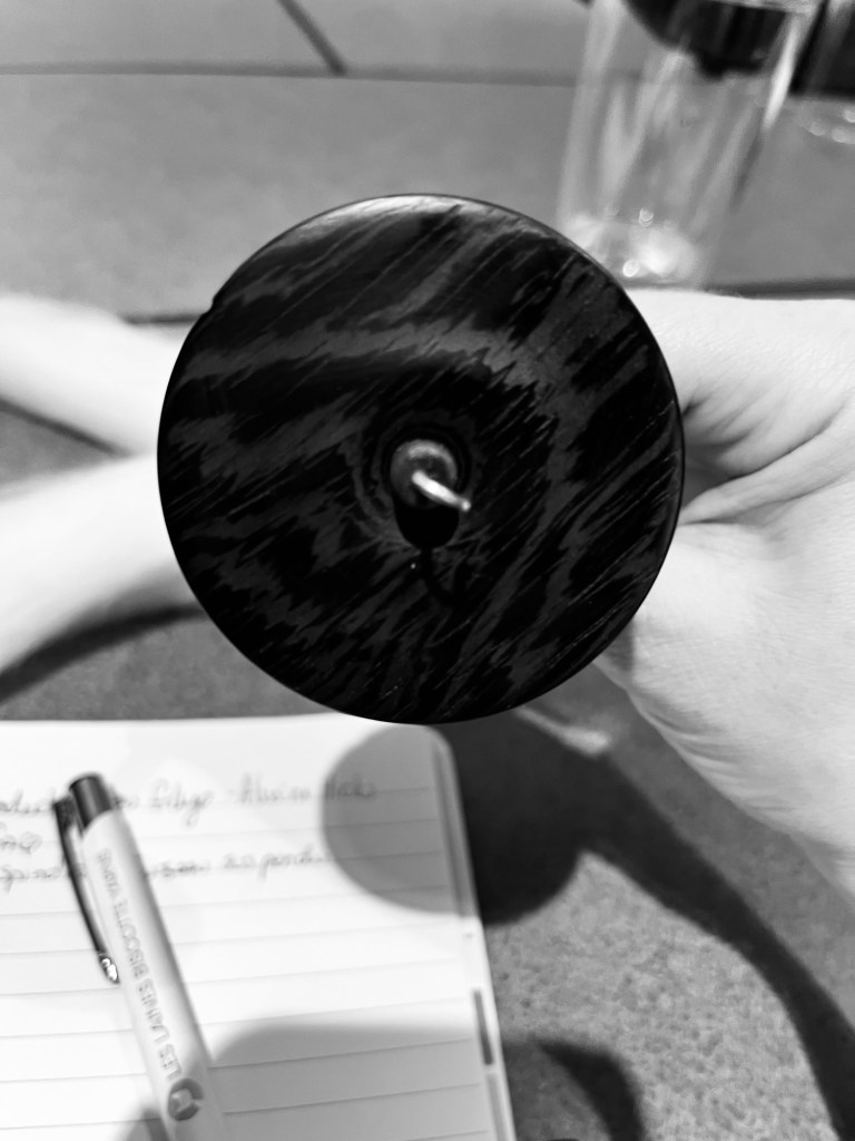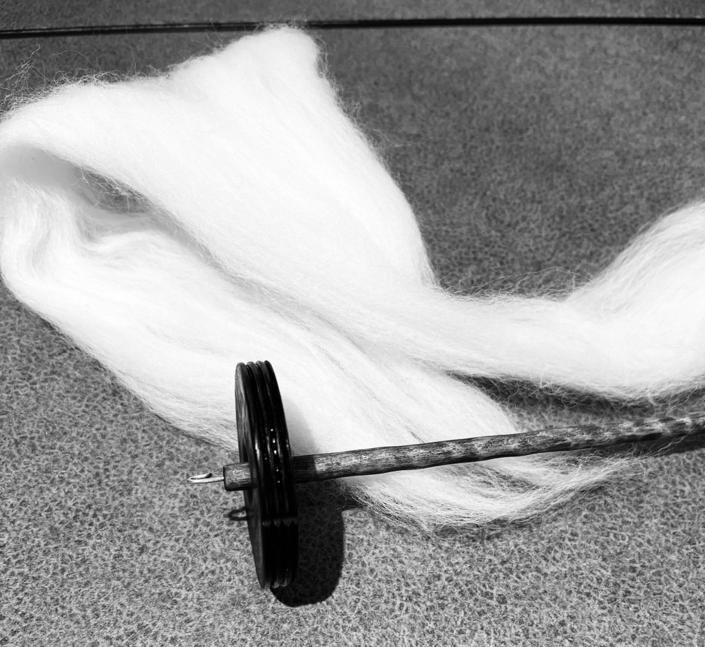 Aujourd’hui je suis allée à un atelier de filage de laine. Il faisait terriblement chaud et j’étais épuisée, mais j’ai aimé. J’ai acheté le fuseau. Il a été fait à partir du bois du premier lit de la dame qui donnait le cours. C’est beau de garder et de transmettre les choses.