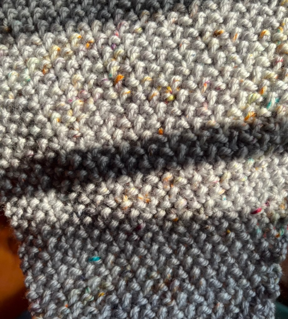 J’ai tricoté beaucoup beaucoup beaucoup… là je suis dans une laine pigeon que je trouve infiniment jolie: avec ses minuscules touches de couleurs.