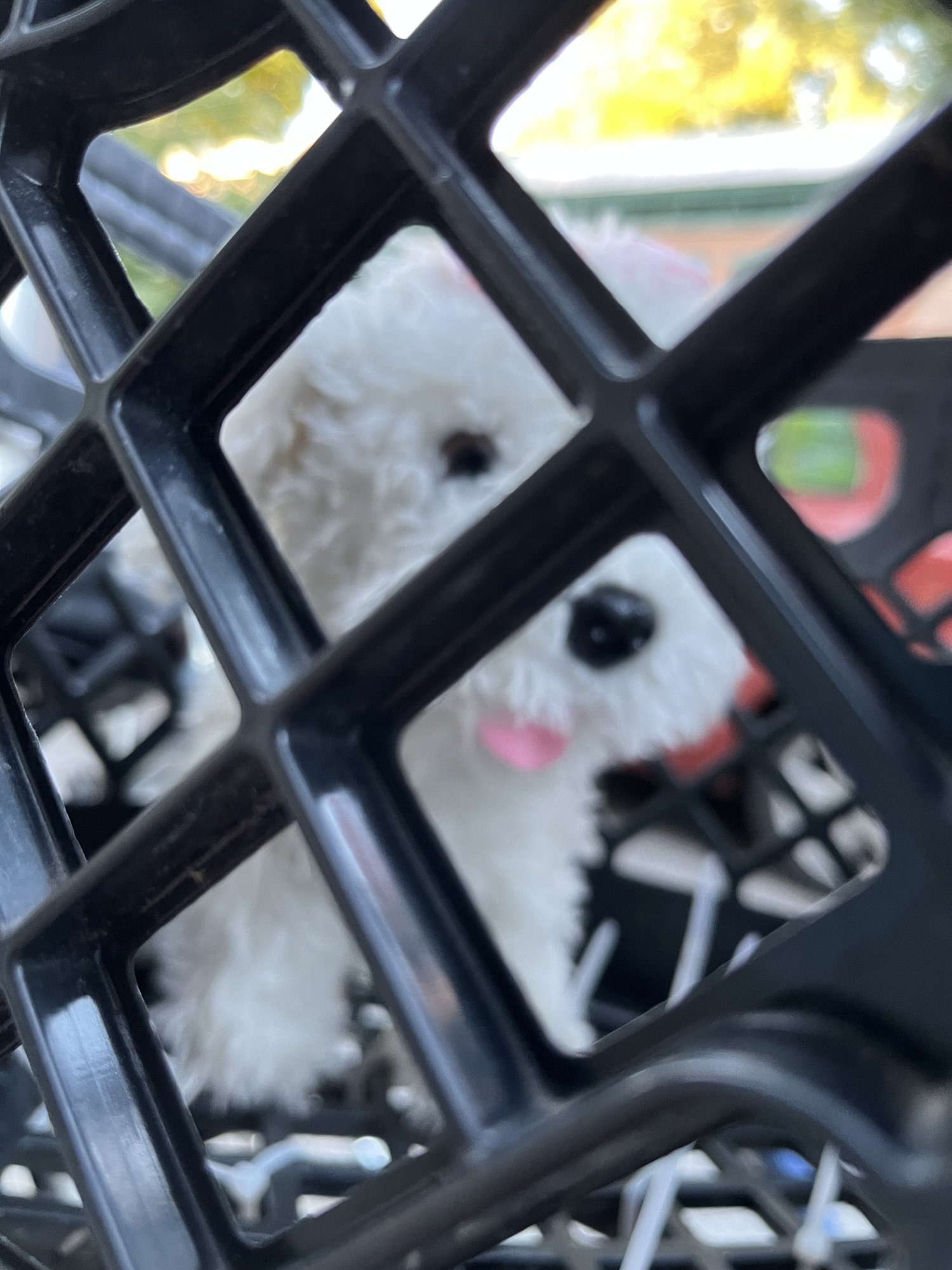 Je n’ai plus de photo intéressante donc photo de cette petite peluche prisonnière d’un caisson de vélo que j’ai croisée ce matin: