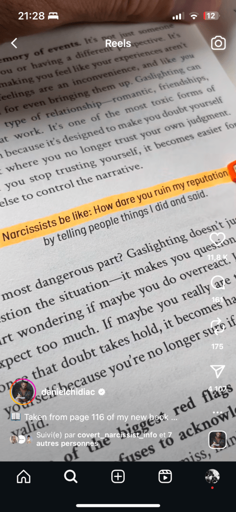 Je ris un peu jaune à chaque fois que ces phrases apparaissent. Je ne pense plus trop à ce qu’il s’est passé… mais en même temps il ya des jours où ça remonte. J’espère ne plus avoir à vivre de manipulation pour un temps. C’est vraiment épuisant. J’ai également compris que la vérité c’est aussi que plusieurs personnes ne m’aiment pas parce que je les confronte sur ce qu’elles me font alors que la plupart des gens endurent leurs comportements malsains sans rien dire. Pour ça aussi il y avait une image: