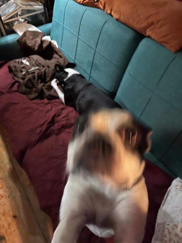 Les chiens vont bien. Cassius joue à la grosse chauve-souris et Hannah est possédée:
