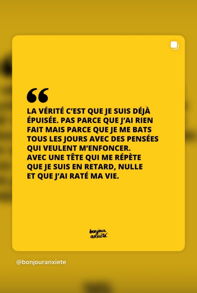 Ça ne me dérange pas qu’on me trouve méchante d’avoir écrit la phrase que j’ai écrite hier. Je pense que ce qui a été fait avant et l’impact que ça a eu sur ma vie est bien pire que quoi que ce soit que je puisse écrire. Le simple fait de me nuire alors que cette personne était déjà au courant du fait que je souffre de la forme chronique du stress post trauma est un manque de respect et une violence. Une violence bien pire que les quatre mots écrits.
