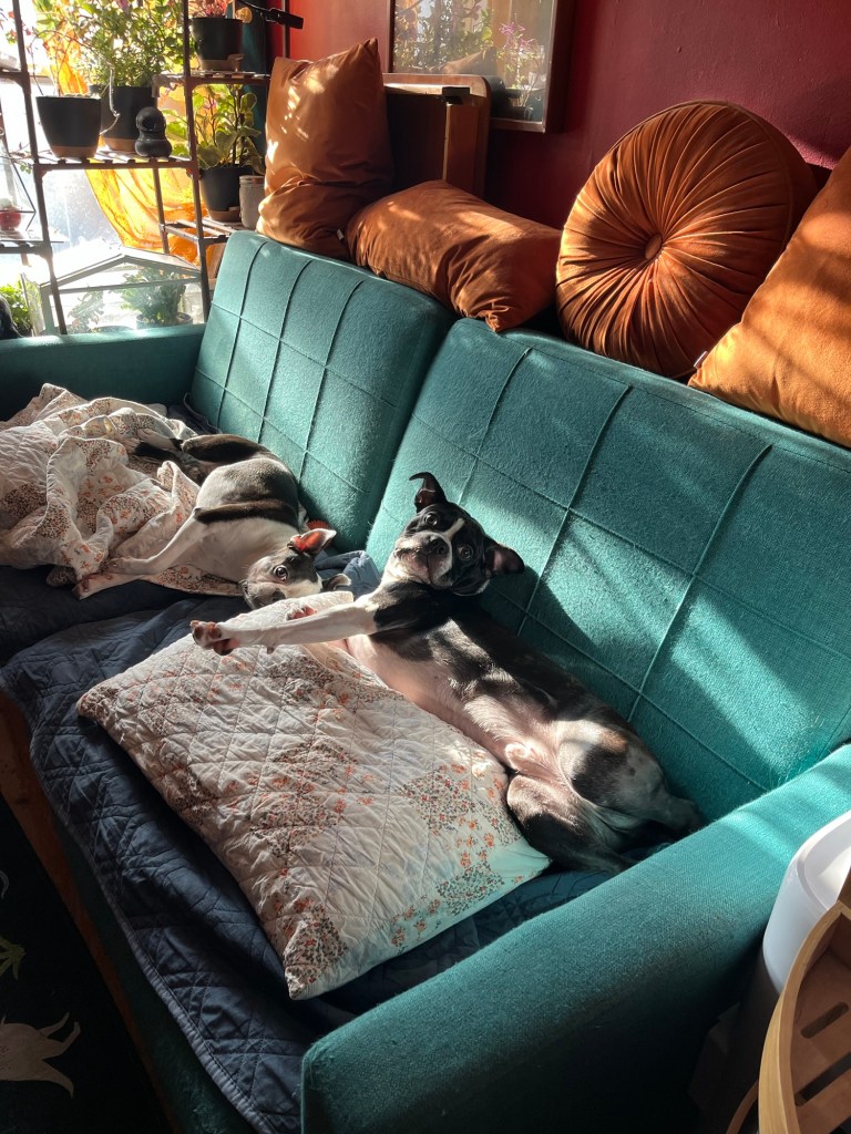 J’ai retenu de ma soirée de vendredi que c’en est vraiment fini avec les gens qui se pensent intelligents de me rabaisser ou de rabaisser mon travail… ou de rabaisser les autres en général. Ça me ramène à une époque où j’ai vécu beaucoup plus de violence et qui m’a presque détruite. Ca fait longtemps que je ne les endure plus, mais la c’est la porte immédiate et le plus grand évitement possible de leur présence dans ma vie. Le fait que j’aie trop bu ce soir-là alors que je n’ai jamais de difficulté à ne pas le faire me le confirme aussi. Trop de mauvais souvenirs. Trop de personnes malsaines ayant crissement plus besoin que moi d’aller en thérapie. C’était ridicule de réduire mon travail à mes chiens, mais aussi, si mon travail parlait juste de mes chiens, ça ne serait pas vraiment bizarre dans la mesure où les personnes qui ont vécu des violences extrêmes qui deviennent plus proches des animaux que des humains ne sont pas particulièrement rares… mais et encore moins inintéressantes et non valides.