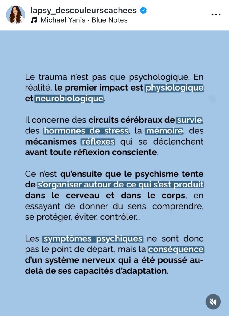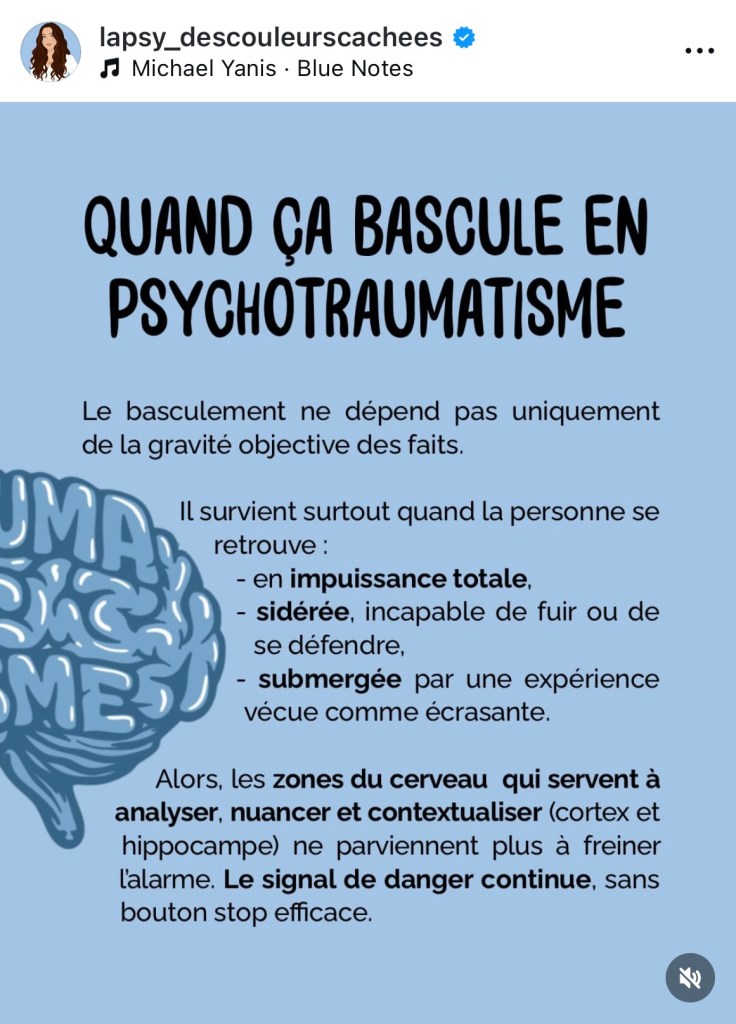 Je vous ai trouvé une vulgarisation quand même efficace des effets du traumatisme sur le cerveau.