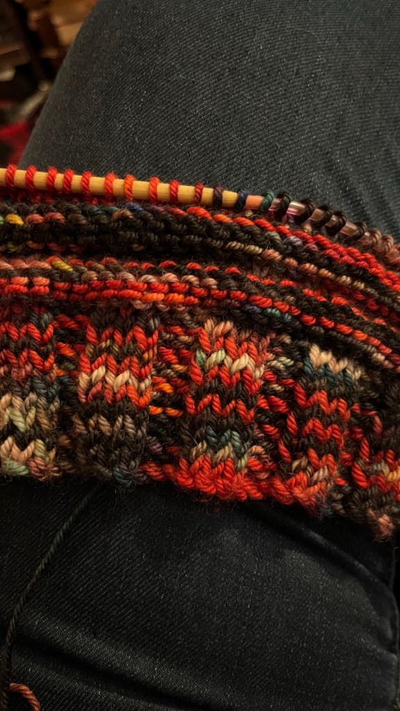 J’ai retrouvé mon courage et un peu d’envie de vivre dans la fond d’une chanson, dans un reel Instagram qui disait que si on nous dépeint comme un vilain, mieux vaut prendre la pose, dans un texte que j’écris sur la mort de mon ex et dans l’étude pour un examen qui a lieu dans une heure. Dans le tricot qui m’apaise aussi: