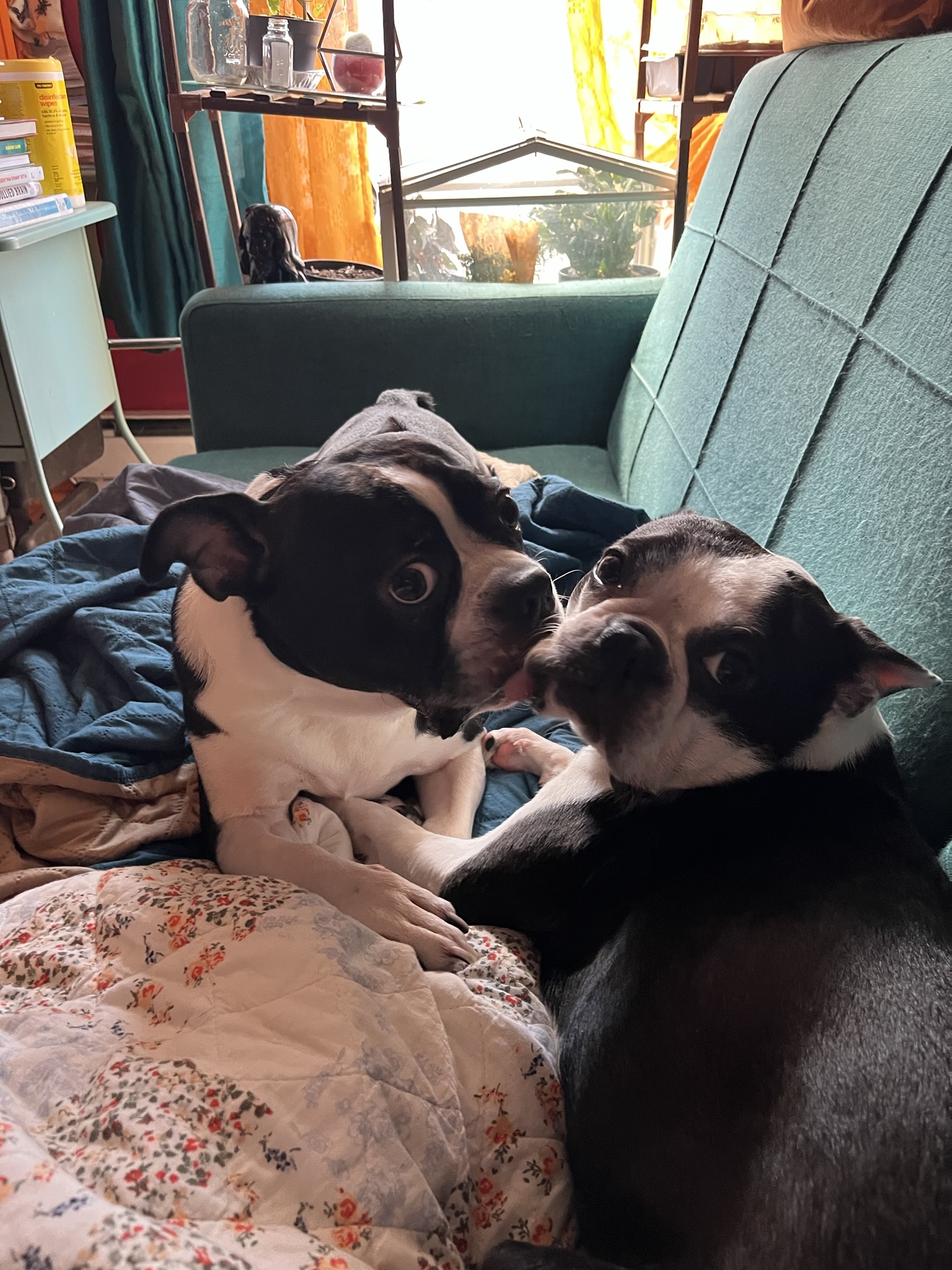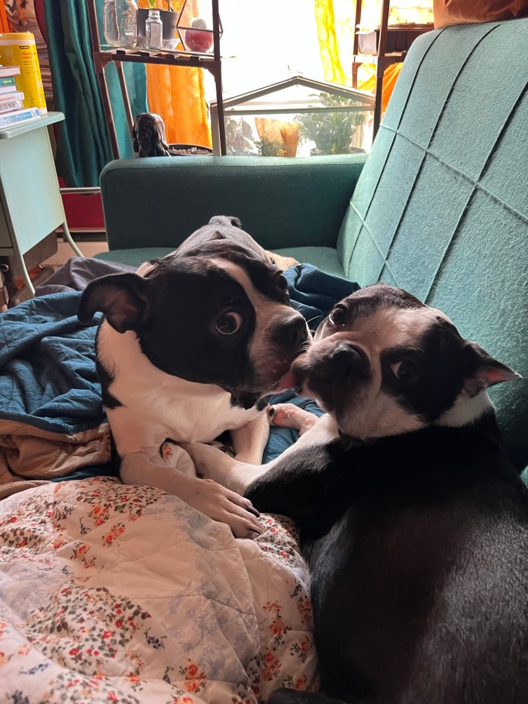 J’ai passer la journée avec les chiens à regarder des films pour la famille pour essayer de me détendre. Ce serait difficile qu’ils soient plus mignons et réconfortants: