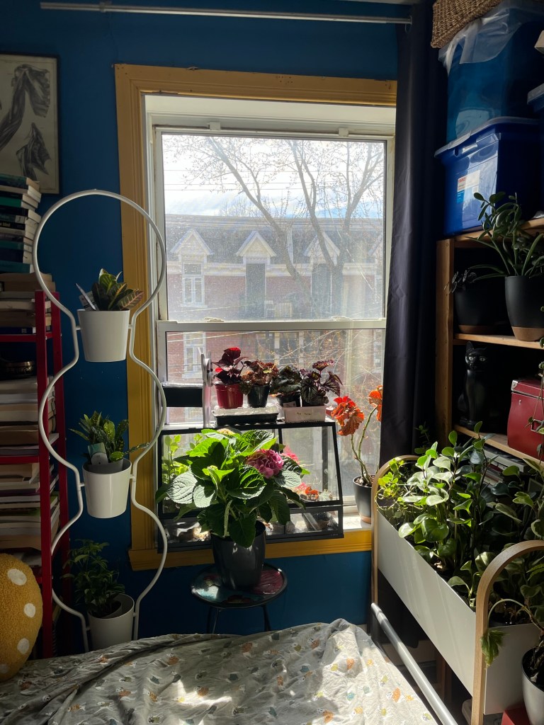 Il y en a plein d’autres en bas, mais il y a aussi des semis de plants de légumes qui poussent. Ça aidera à ce que ce soit moins chargé ici quand ils partiront au jardin. Je dois en commencer d’autres demain pour donner un petit coup de pouce à ce que je pourrai bientôt planter. Une petite longueur d’avance… Je dois aussi aller à la bibliothèque et cuisiner. Ça devrait être une autre journée calme avant le retour au travail.